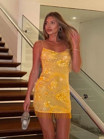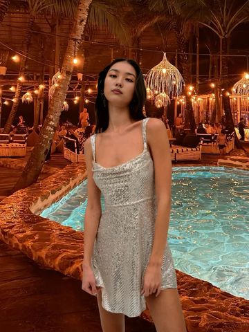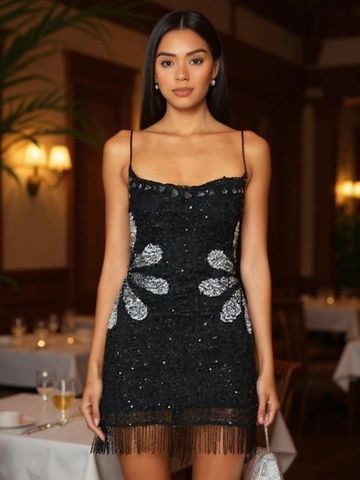 Lavinia Backless Fringe Mini Dress in Grey - S